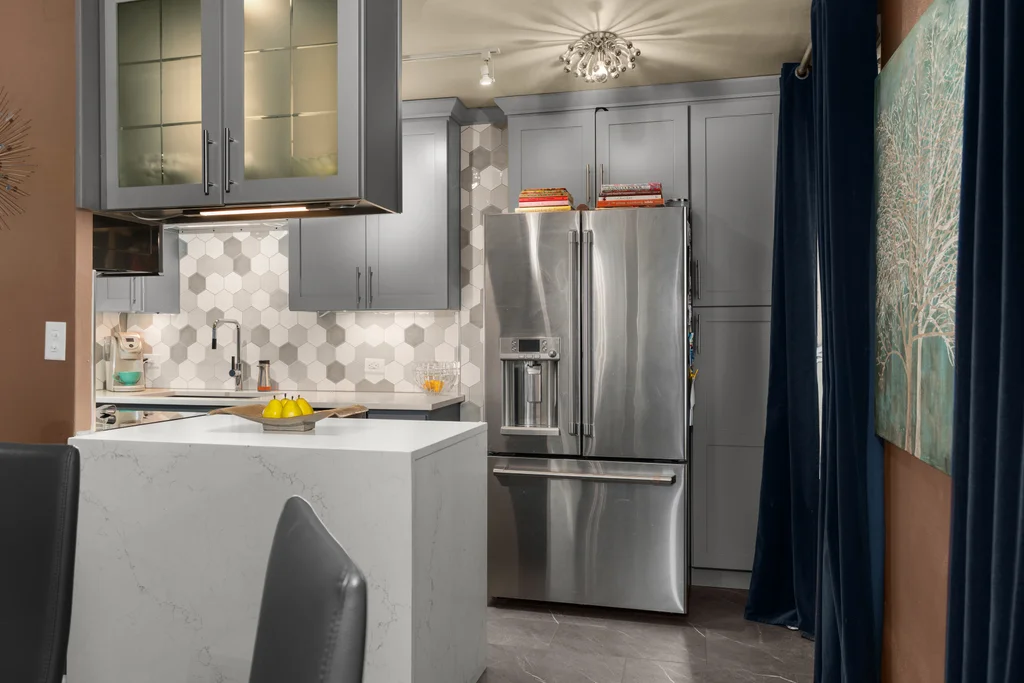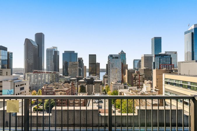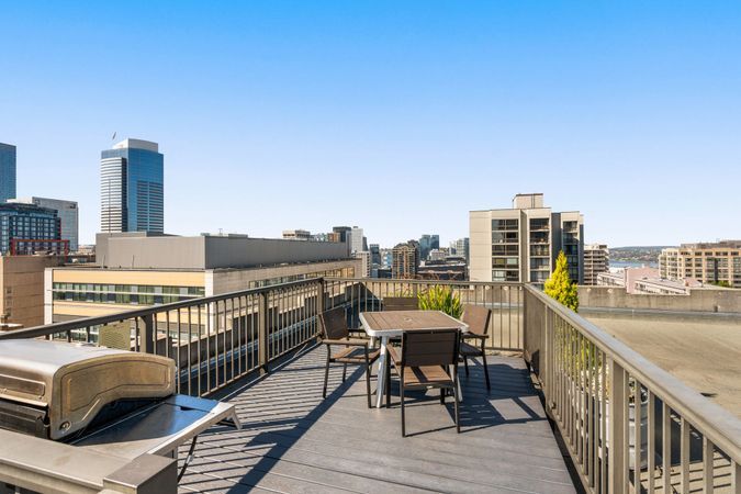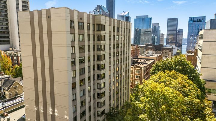 Carefully curated end unit at the beloved Decatur condos on popular First Hill. This space has been thoughtfully renovated throughout and gives warmth & serenity. Entry vestibule opens to rich spaces including living room with marble-look Trucore flooring. Open kitchen design, recently remodeled including newer cabinetry with slow-close drawers & undercabinet lighting and a pantry; plus honed quartz slab counters, gorgeous oversized hex tile backsplash, and peninsula island with double waterfall counters. Open living spaces including a dining area that can fit a proper table perfect for hosting brunch, and oversized windows to take in the natural light. Main Bedroom with large format tile Trucore flooring has space for a dresser, updated light fixture, and ensuite attached bathroom. The Primary bath is newly updated with custom tile flooring, handsome Italian handcrafted tile shower surround, floating vanity, & new fixtures. Surprising closet spaces w custom organizers. Rare in-unit laundry (not common for units in this building! Bldg also offers a free common laundry rm). The Decatur: concrete & steel building, pet-friendly, no rent cap, on-site manager. Don’t miss the roof top deck with City, Sound, Mtn, and Lake views. Vibrant in-city location just mins to Rapid Ride bus, Museums, the Symphony, cafes & hip Cap Hill!