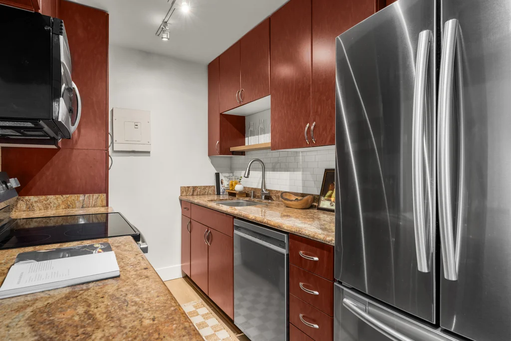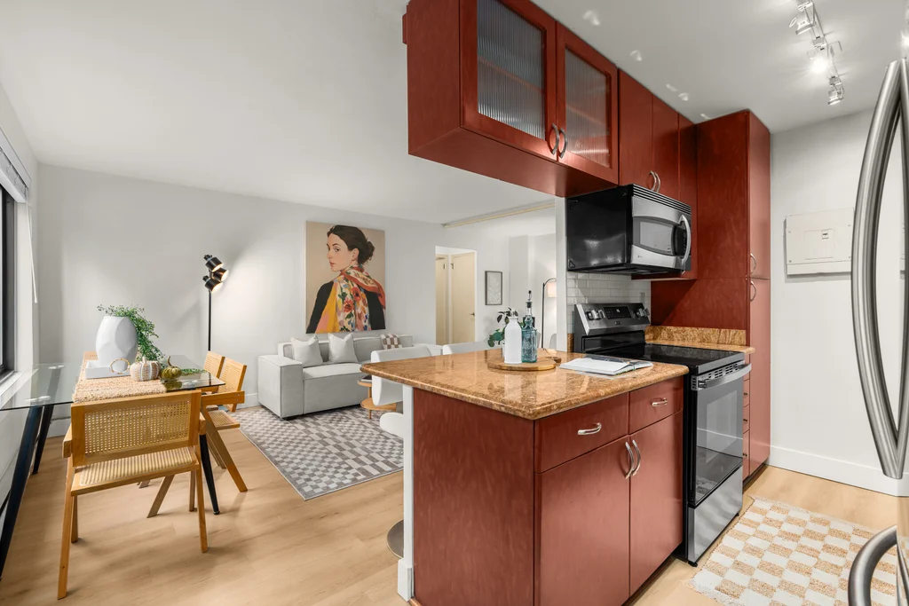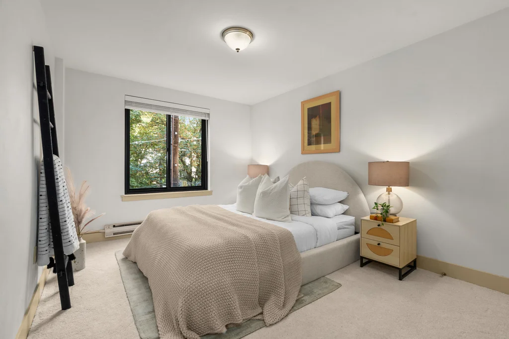 Immaculate end unit in classic Decatur building. Lovely tree canopy outlook from this 3rd floor unit, recently upgraded with newer LVP flooring throughout the main living space. Entryway has oversized storage closet plus a separate coat closet. Open living room plan with good natural light. Kitchen has slab granite counters, good cabinet space, newer range & bosch dishwasher (stainless appliances), and a peninsula island for counter seating and connectivity to the dining area. One Bedroom with brand new carpet. Full bath nicely presented and newly refreshed: hex tile flooring, subway tile shower surround, bathtub refinished, and newer pedestal sink & fixtures. This unit comes with rare Garage Parking space #21. A common (free) laundry room is just down the hallway, with a bonus laundry area in the basement. Other amenities include a gorgeous roof top common deck with views of Mt Rainier, the Sound, City, and even Gasworks Park! On-site building manager, secure lobby entrance, and a very choice First Hill location with a Walkscore of 98!