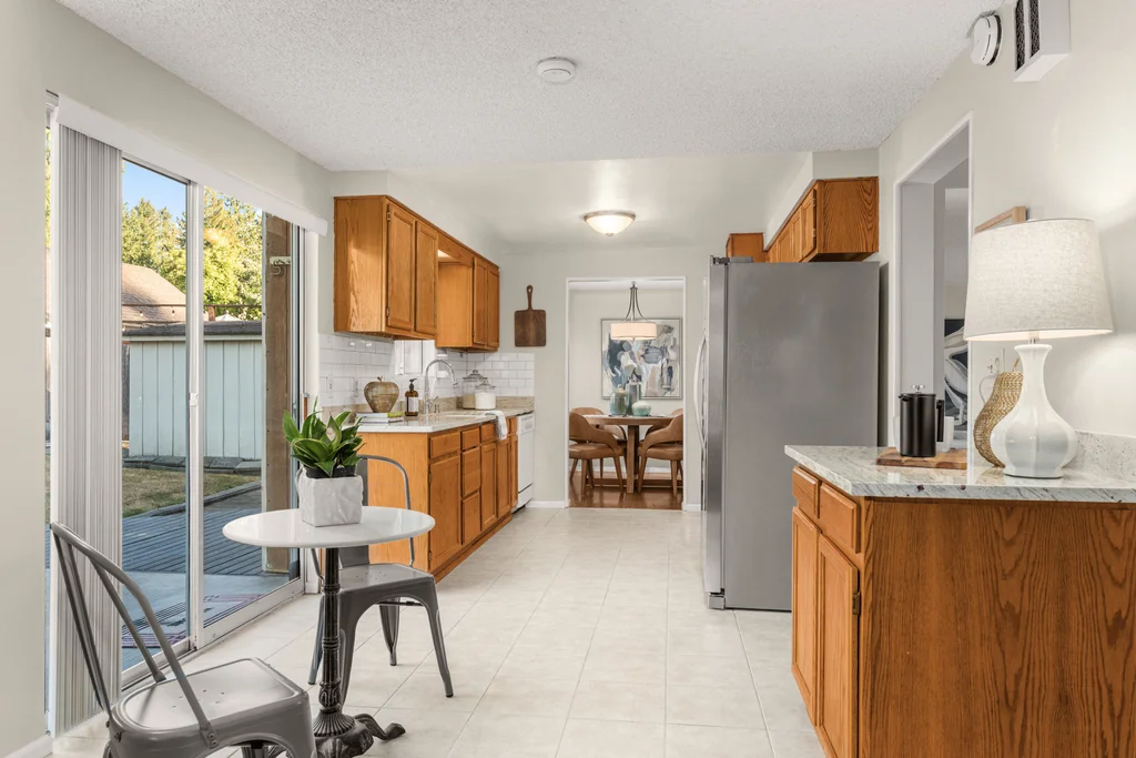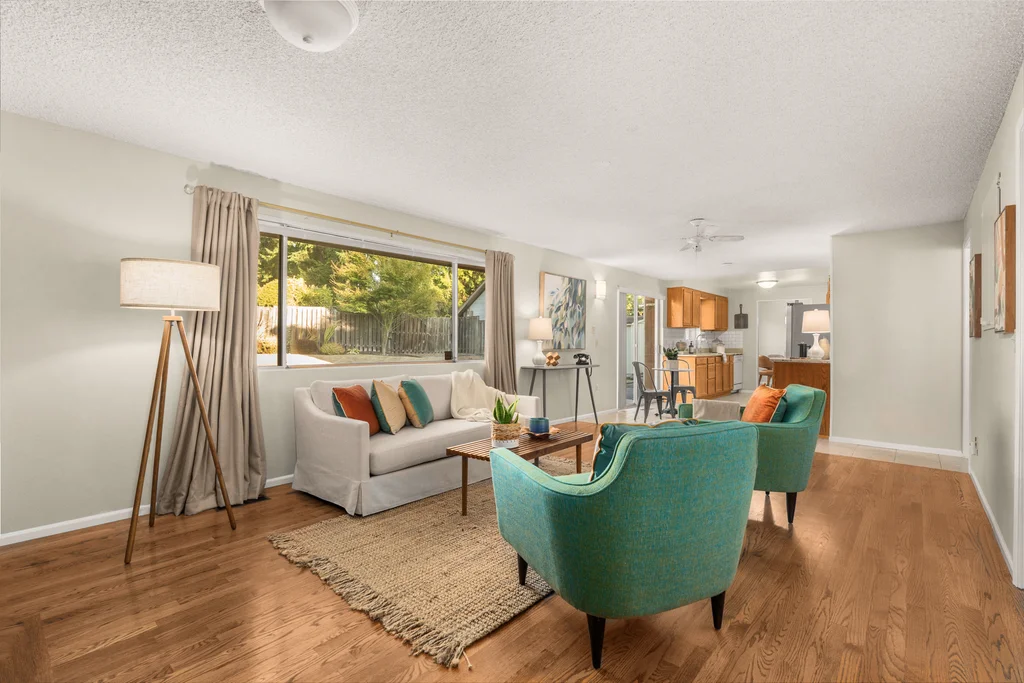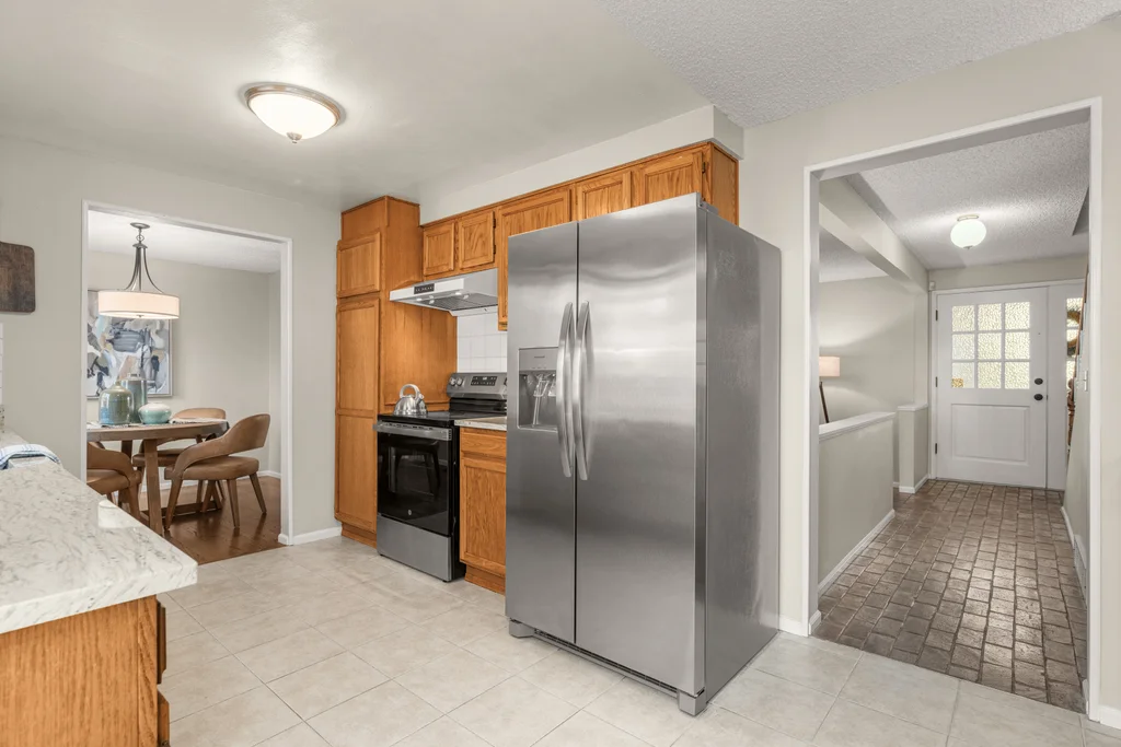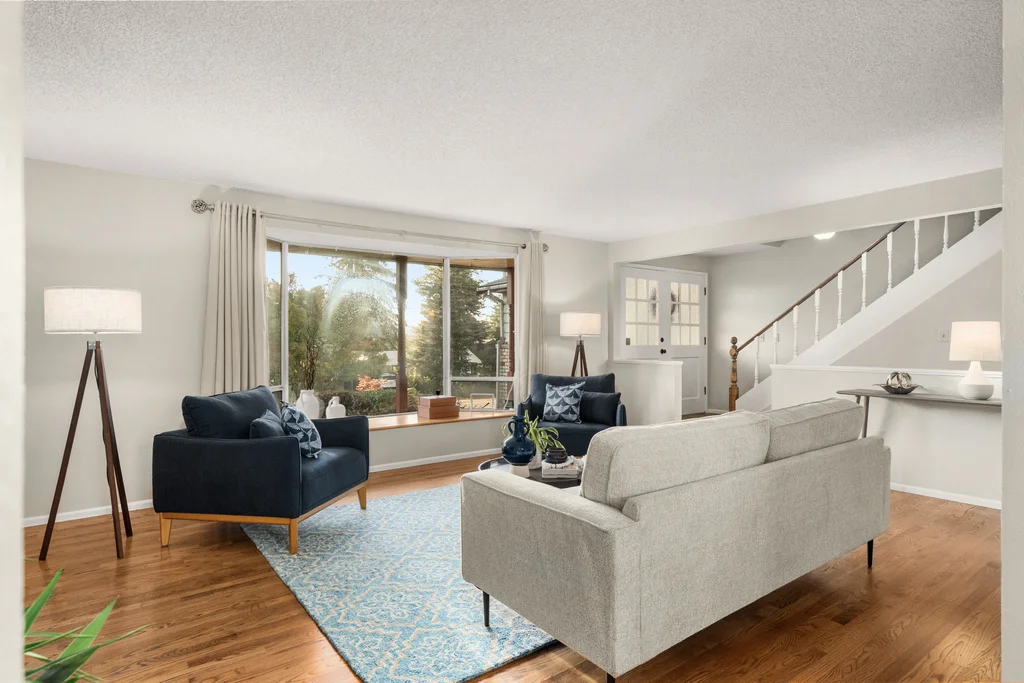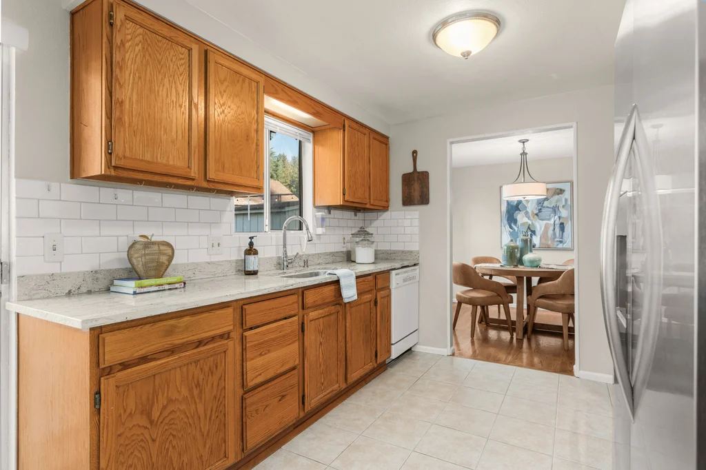 Two-story Traditional in excellent NE Seattle location. Greeted by a covered front porch & a double door entry, this home offers a fantastic floorplan with hardwoods on the main. Brick entry hallway opens to sunny living room with bench seat overlooking the yard. Kitchen recently refreshed with tile floor, quartz counter tops & new stove & fridge. Generous dining room plus a wonderful family room off the kitchen has wood-burning fireplace with handsome brick surround, convenient half bath, laundry room, access to the garage, and slider leading out to backyard. Coveted floorplan with 3 Bedrooms +2 Baths upstairs, including Primary Suite with large closet & attached ensuite full bath! Good sized fenced backyard. Oversized 2-car attached Garage parking. Move right in and enjoy!